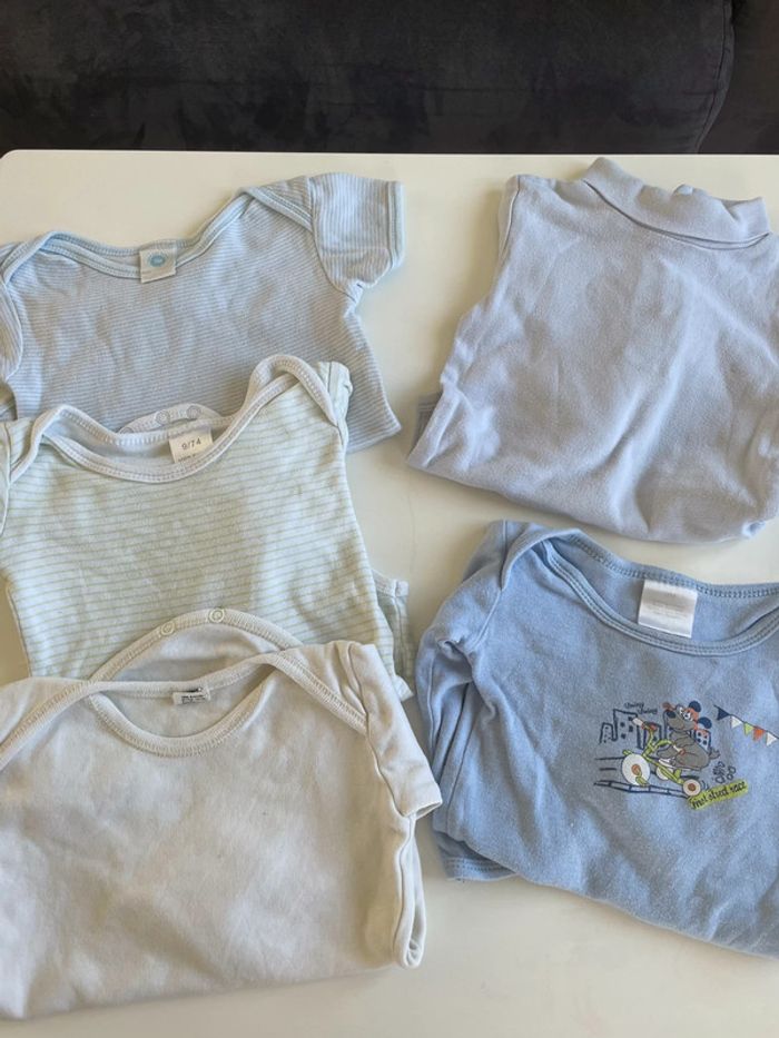 #zezettedelavega9mois lot 5 body comprenant 1 manche courte 3 manche longue 1 cyrillus col roulé
