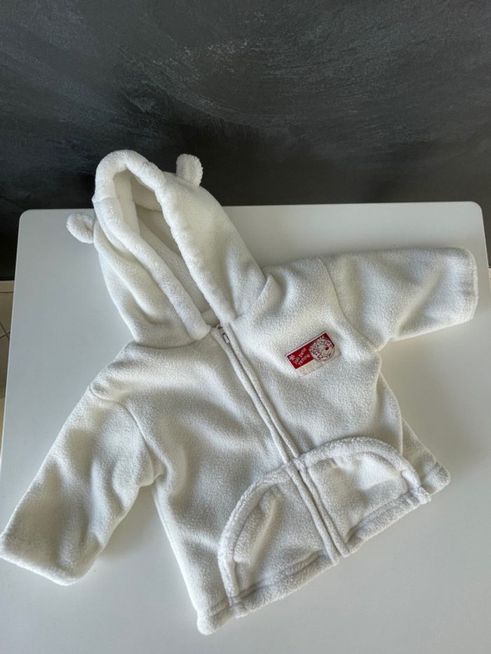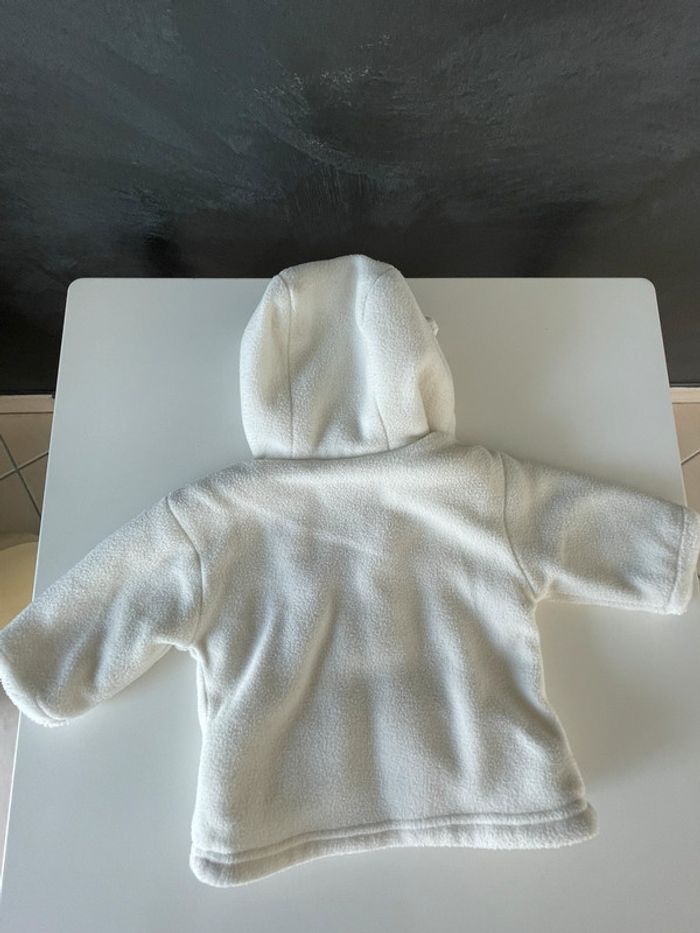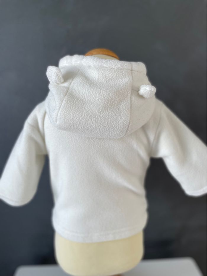 #zezettedelavega3mois gilet blanc tout chaud petite capuche fille ou garçon