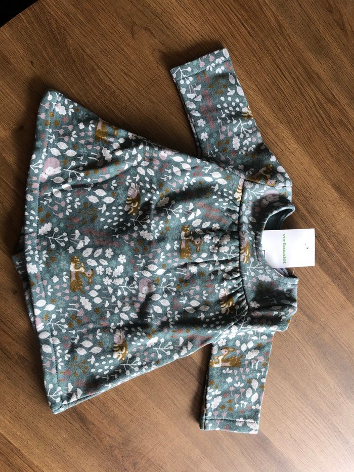 Petite robe vert d’eau avec des animaux, de la marque vertbaudet, neuve non portée, avec étiquette.
