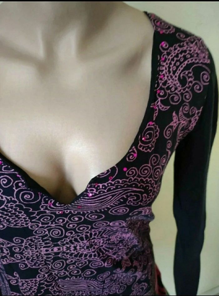Tunique desigual. #motifs #strass #ronds #multicouleurs #arabesques #mancheslongues #mov59Femme