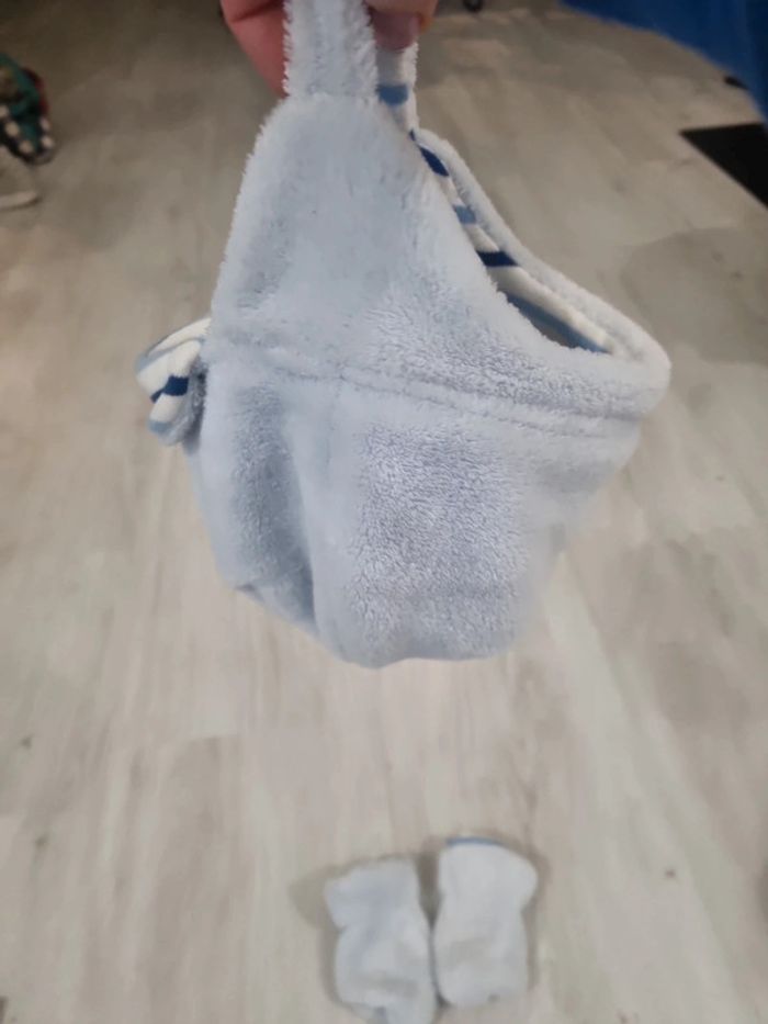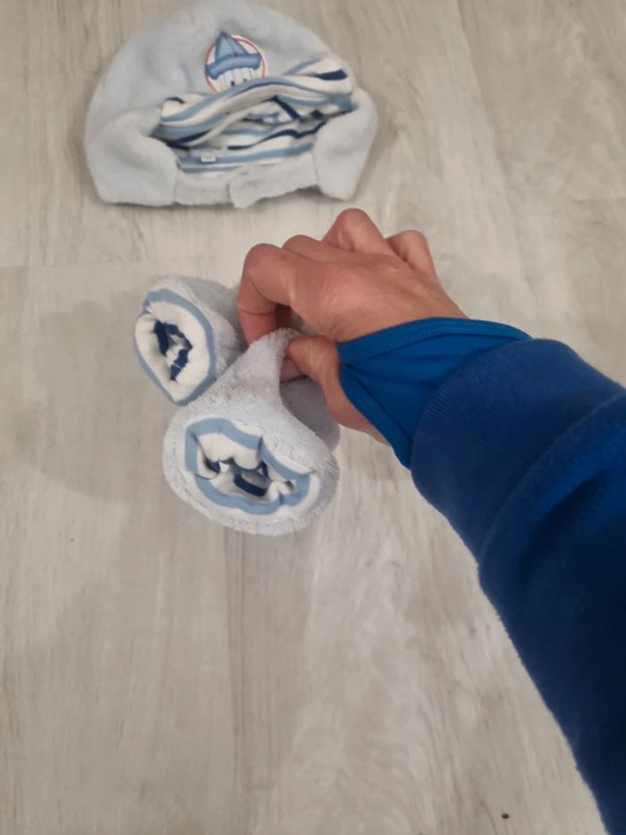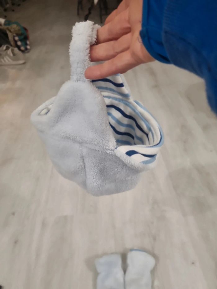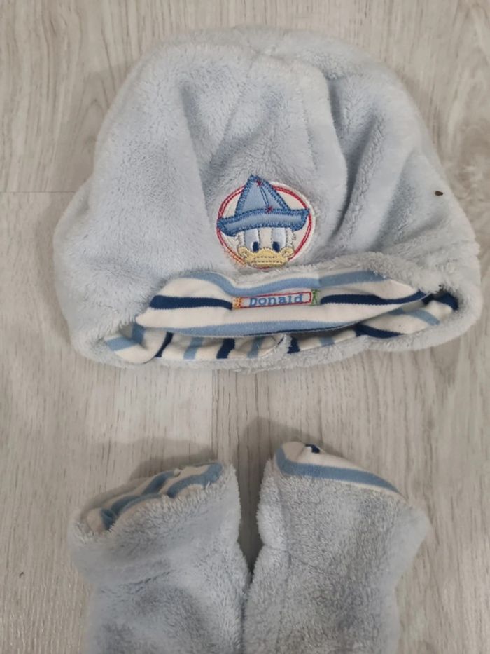 Bonnet bleu Donald et moufles, en velours et coton, 6-12 mois #somara66garcon12mois