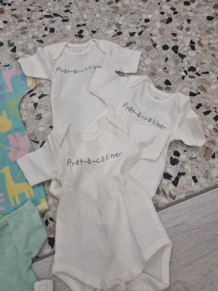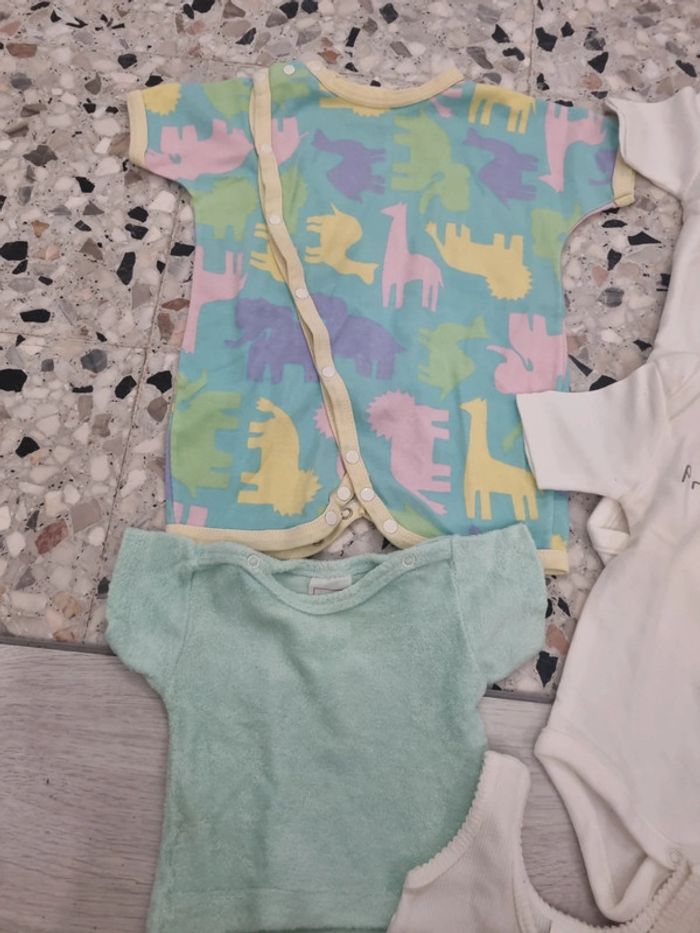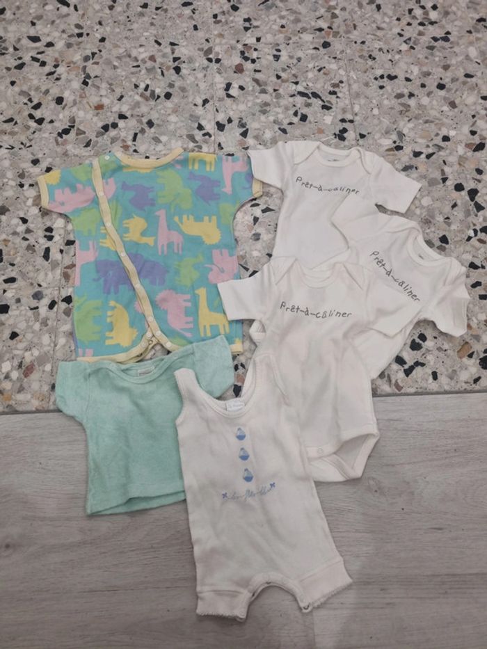 Lot 1 mois garçons avec 3 bodies manches courtes, 2 barboteuses et un tee-shirt manches courtes eponge #somara66garcon1mois