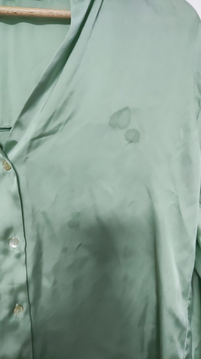Chemisier Zara En soie, longues manches Vert uni Tache idéal teinture textile a faire