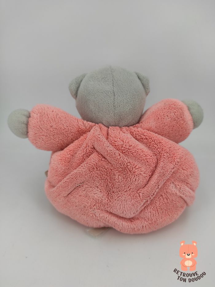 🐇 Doudou Boule Ours Plume Gris et Orange Saumon avec broderie sur le pied en fil rose fluo, Kaloo 📏 Dimension : environ 18 cm ✨ Occasion, très bon état, étiquette coupée 🧼 Lavé avec lessive hypoallergénique 👀 Vous achetez le doudou que vous voyez sur les photos
