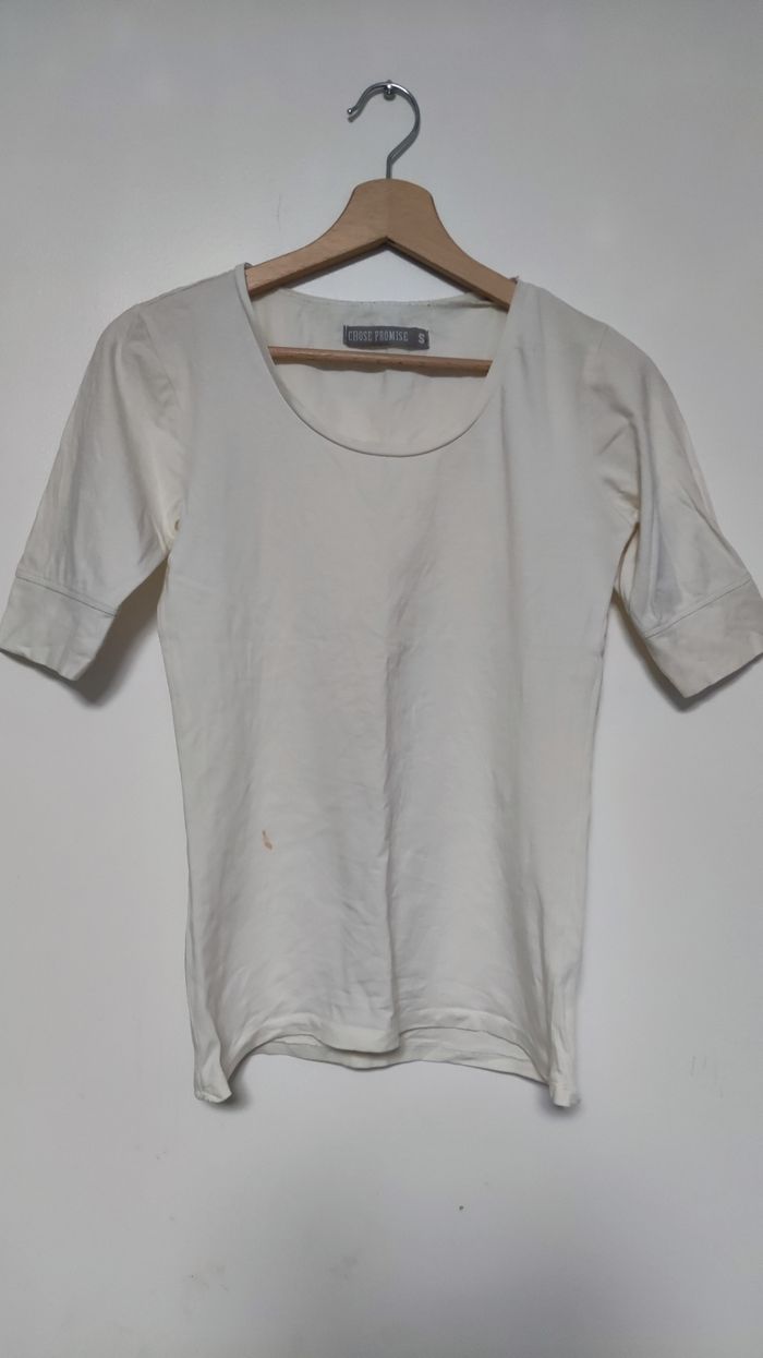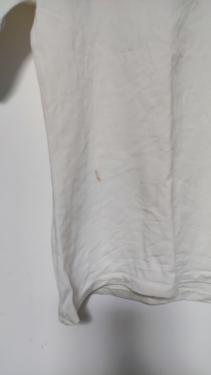 Tee-shirt manches courtes Une tâche, sinon en très bon état. idéal teinture textile à fin de lui donner une seconde vie ,