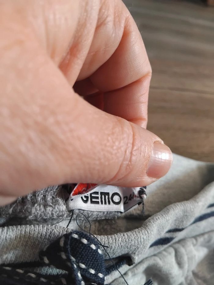Bonjour, je vends ce bas de jogging gris clair de la marque gemo taille 24mois en très bon état. Lavé maison non fumeur.