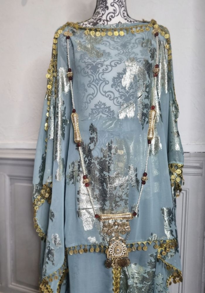 Collier chaoui qui se fixe avec des crochet Perles blanche et or Pendentif doré avec pierre blanche et pampille Jamais porté #bijouchaoui #chaoui #skhab #skhabblanc #meskia #collier #collierchaoui #colliermelhfa #bijoumelhfa