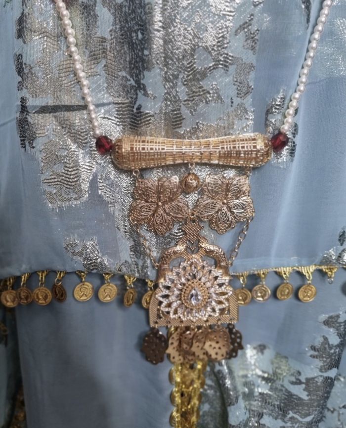 Bijou collier chaoui skhab blanc avec pendentif doré melhfa - photo numéro 7
