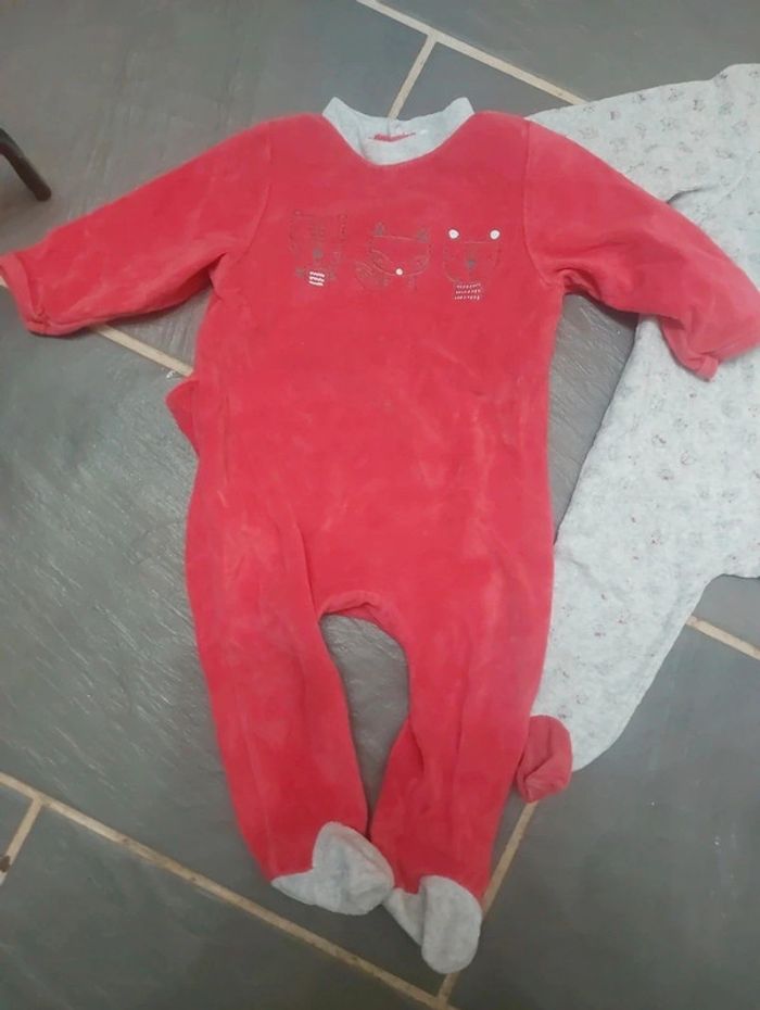 Vends lot de 2 pyjamas 1 pièce 1 rouge 1 gris Marque mots d'enfants 12 mois #juhjuh12mois