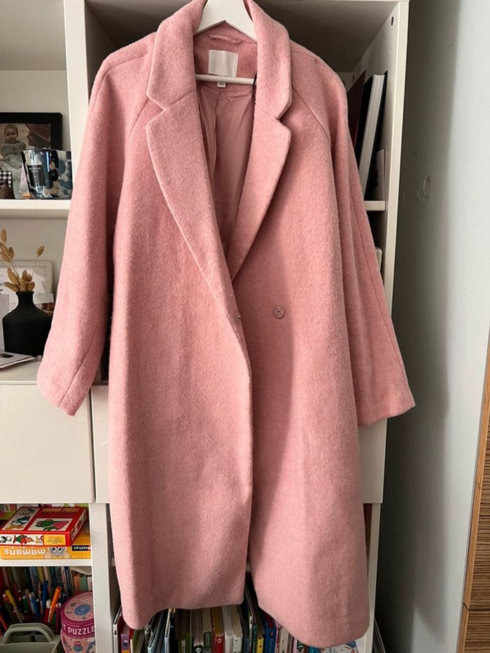 Long manteau rose Chaud Taille L H&M Porte une fois Taille loose