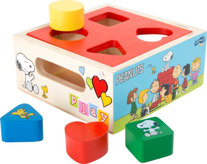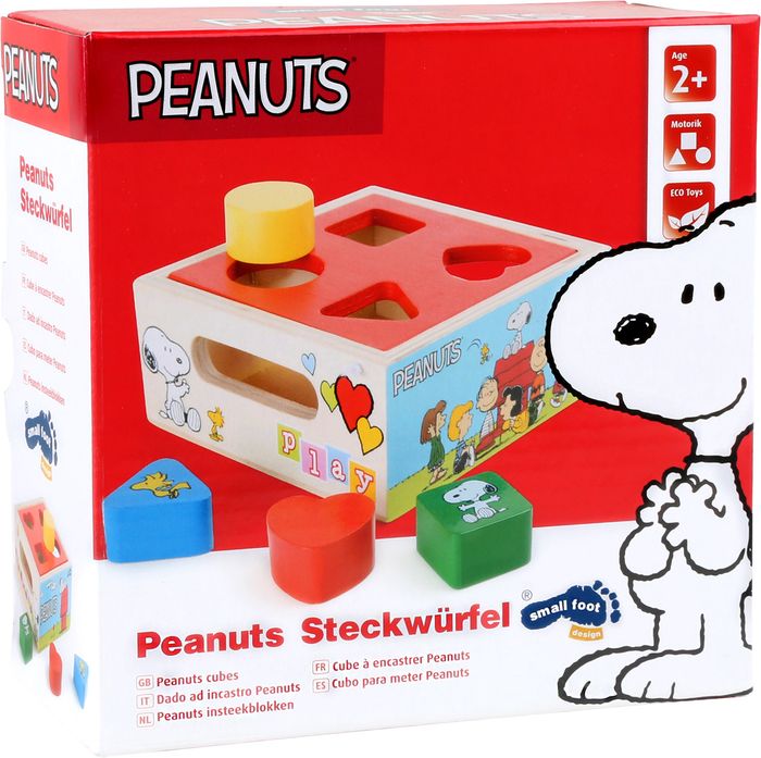 cubes en bois peanuts à encastrer Legler 4336 Les sympathiques personnages des Peanuts ornent ce cube à encastrer maniable de la marque small foot design. Il s´agit ici de placer 4 formes différentes au bon endroit. Non seulement cela stimule la motricité, mais cela amuse beaucoup les tout-petits. Pour extraire les formes du cube, il suffit de soulever le couvercle rouge. Dimensions: env. 13 x 13 x 5,5 cm Vous êtes intéressé par plusieurs produits, n’hésitez pas à nous contacter pour réduire les frais de port NE CONVIENT PAS AUX ENFANTS DE MOINS DE 4ANS