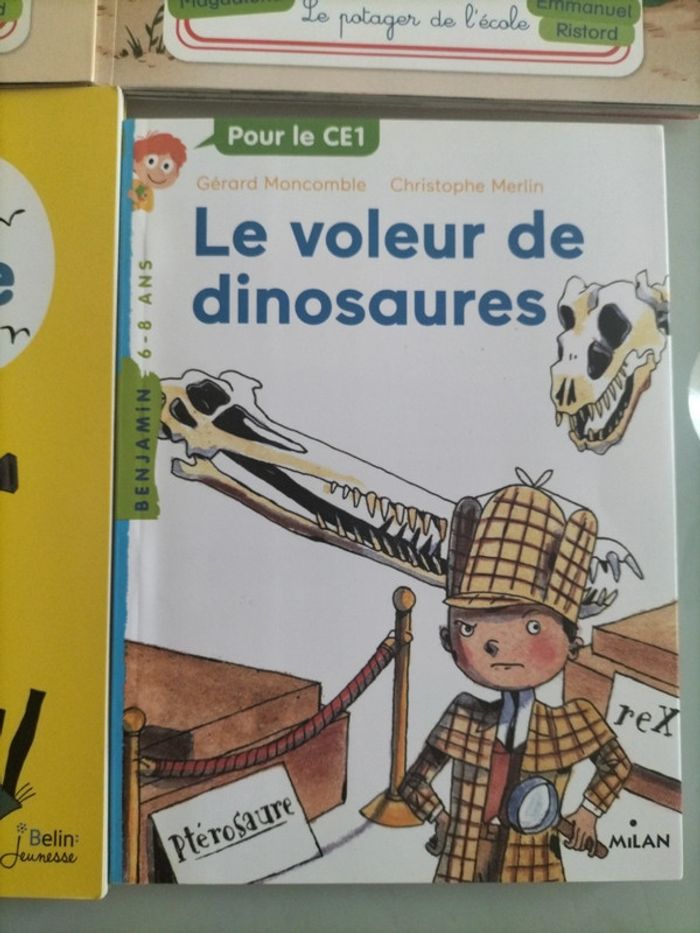 Lot de 4 livres je suis en CE1 Premier jour de jour Le potager de l'école Le voleur d'Oléron ( classe détective ) Le voleur de dinosaures 2 € le livre ou 8€le lot #amoula134livres