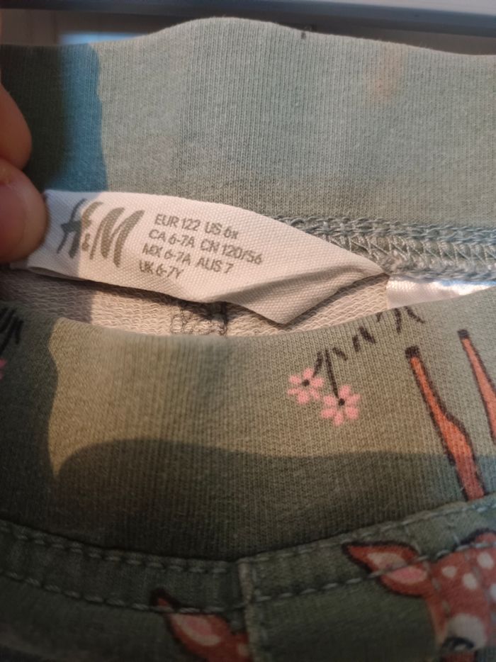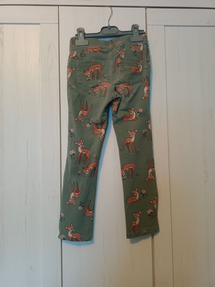 Pantalon vert motifs faon. H&M taille 6-7ans. Bien porté mais en bon état (ni trou ni tâche), peu donc encore faire le bonheur d'un autre enfant. G151