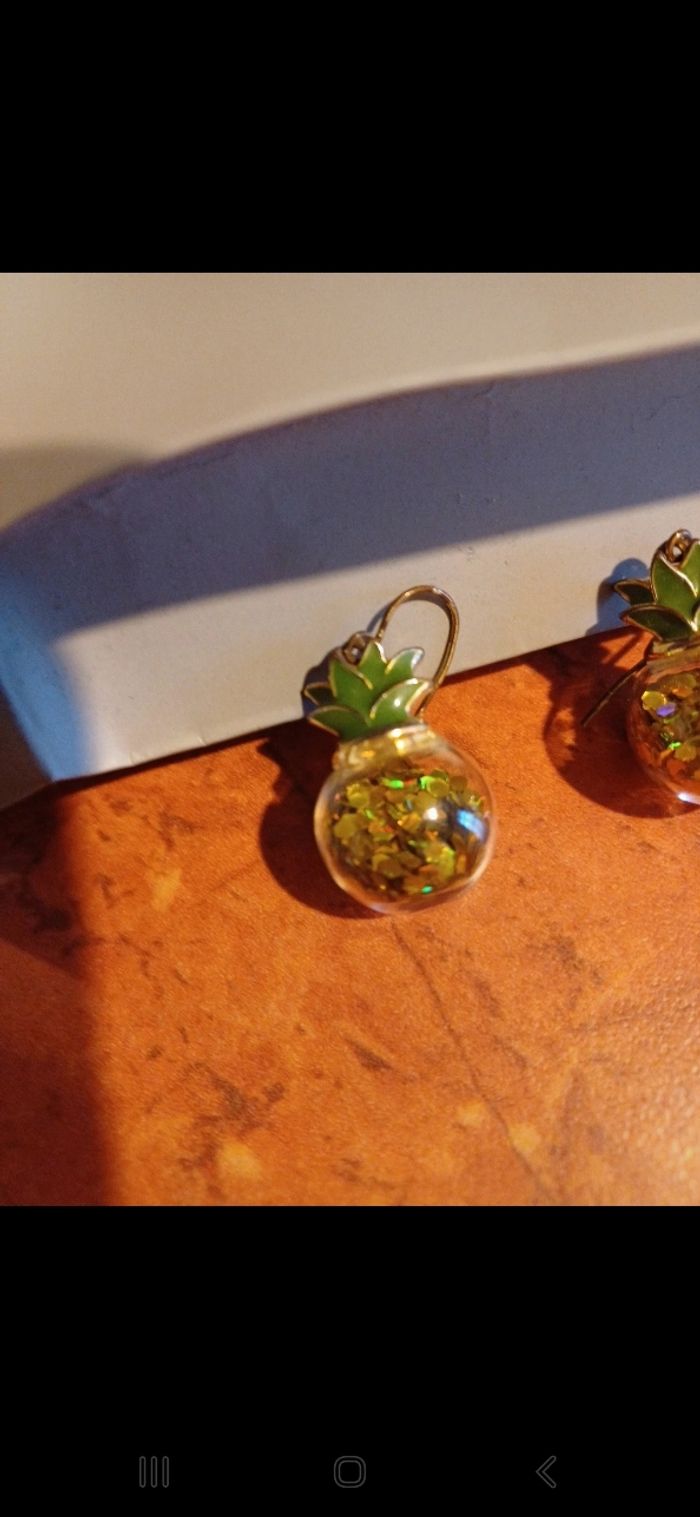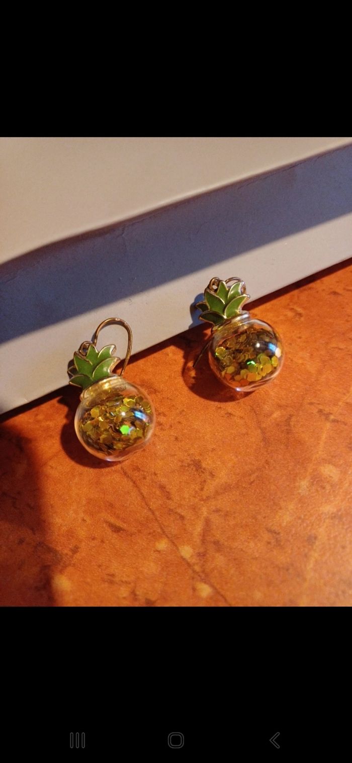 Jolies petites boucles d oreilles en forme d ananas remplies de paillettes.