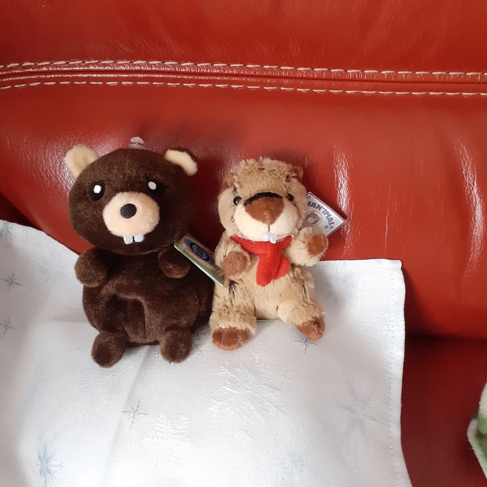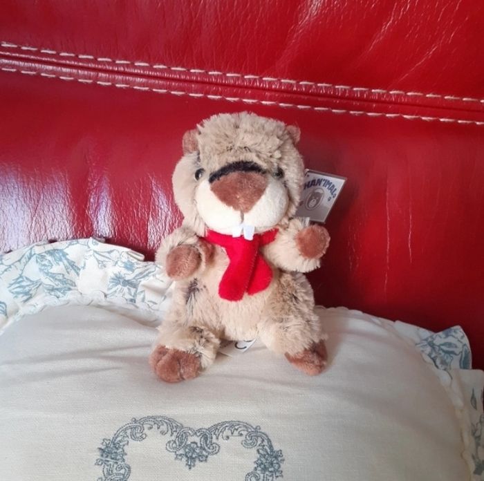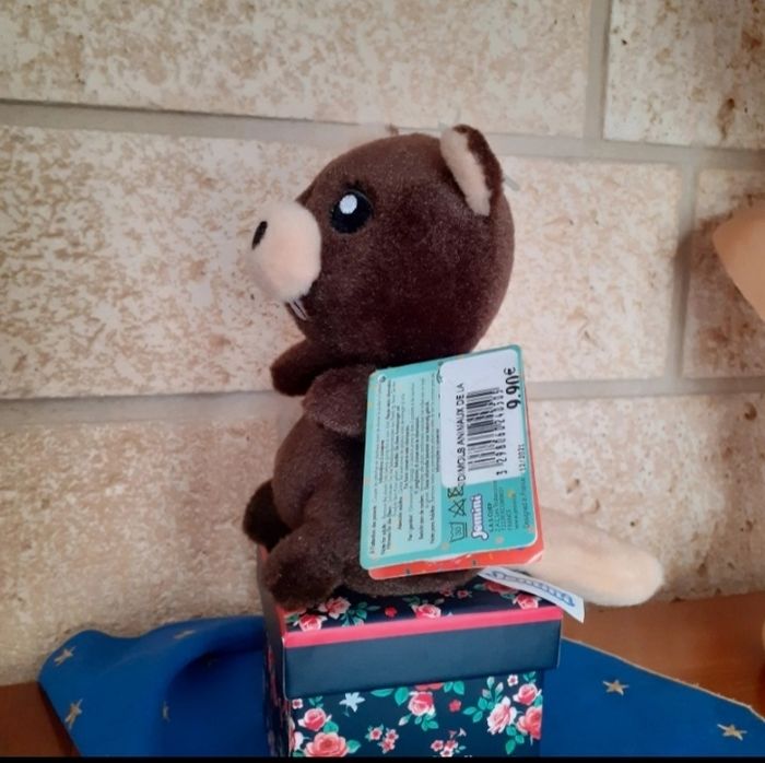 Articles neufs, encore étiquetés. Le lot comprend : 1/ Petite peluche Marmotte marque Han'imal; entièrement rembourrée; yeux boutons; dents en feutrine; écharpe non amovible. Hauteur totale de 11 cm + 2 Petite peluche Castor, marque Jemini; licence Kidimols, série " Les animaux de la forêt ". Peluche entièrement rembourrée avec des petites billes à l'intérieur pour faciliter la position assise. Yeux et dents brodés. Hauteur totale de 14 cm // voir photos pour détails