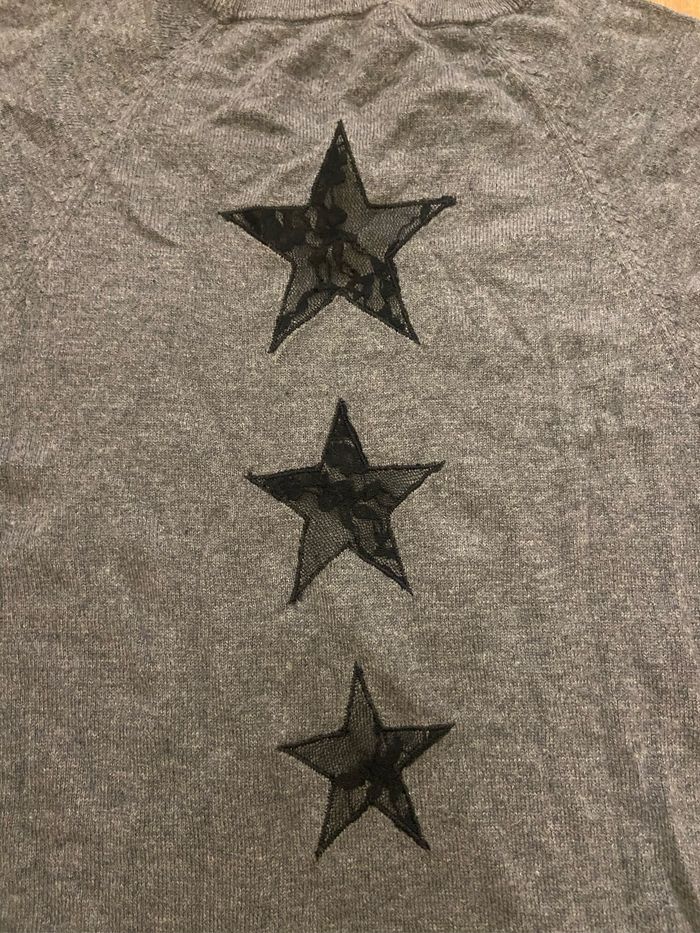 Pull gris pour femme Long Détails étoiles en dentelles dans le dos Viscose coton laine polyamide Hauteur 70 cm Marque best montain