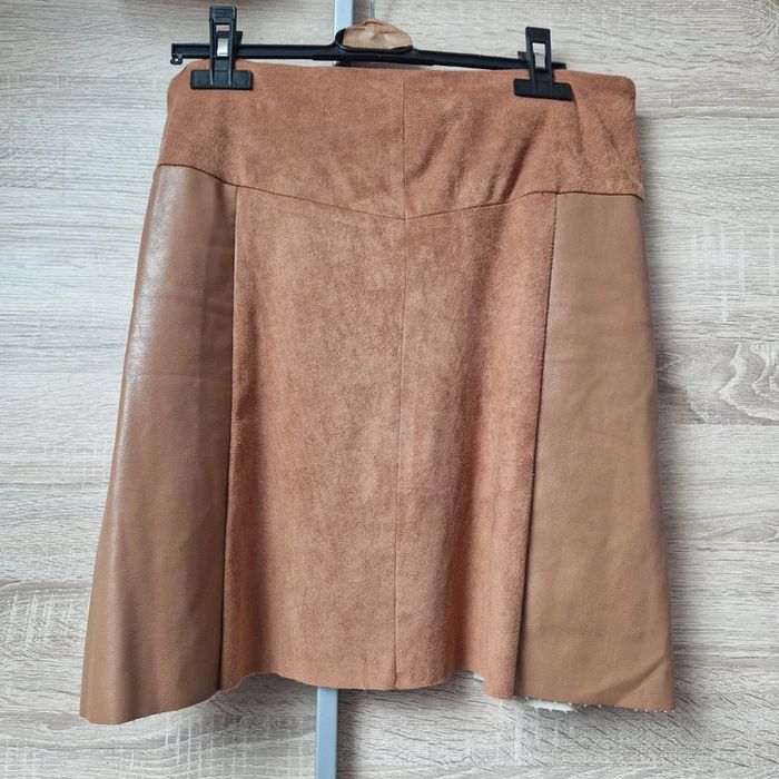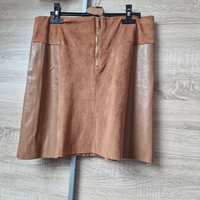Jupe bi matière ( suédine + simili ) taille 38 en très bon état. La longueur est de 44 cm. #lilie210708femmetaille38