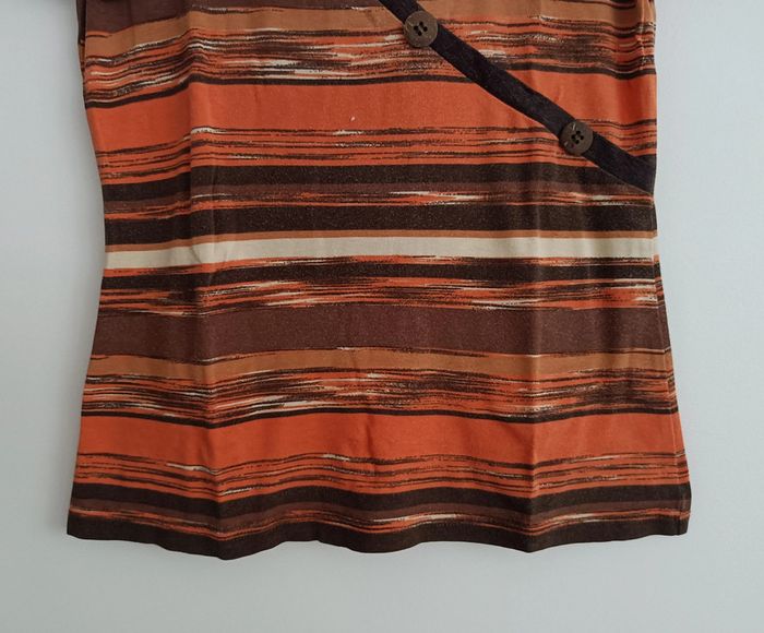T shirt a rayures multicolore degrade orange marron et beige. Manches 3/4. Camaieu. Taille 36 / 38 - photo numéro 5
