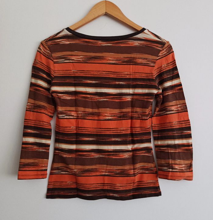 T shirt a rayures multicolore degrade orange marron et beige. Manches 3/4. Camaieu. Taille 36 / 38 - photo numéro 4