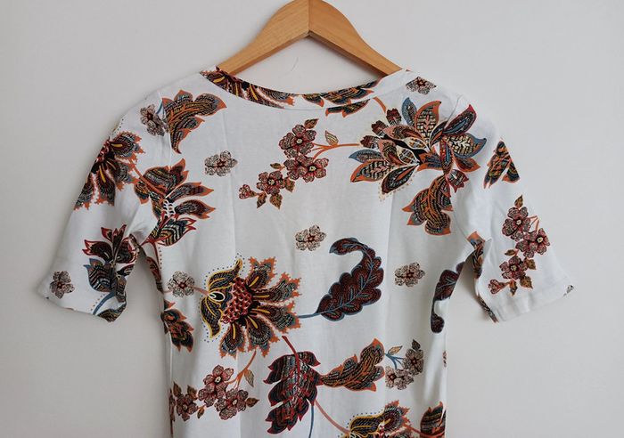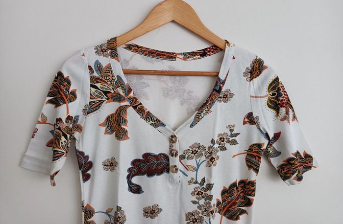 T shirt blanc imprimé feuilles et fleurs multicolore. Camaieu. Taille 36 - photo numéro 4