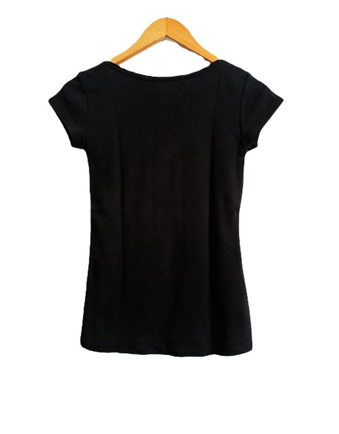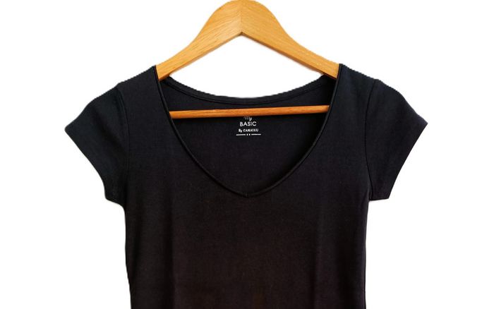 T shirt noir. Col v. Manches courtes. Camaieu. Coton. Elasthanne. Taille S - photo numéro 4