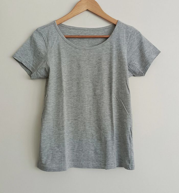 T shirt gris chine. Col rond. Coton. Taille 38 - photo numéro 1