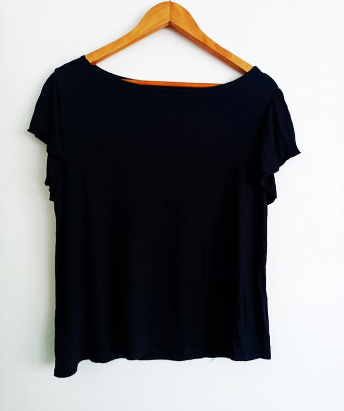 T shirt noir decollete ajoure manches evasees. Taille 42 / 44 - photo numéro 1