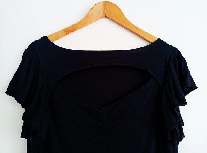 T shirt noir decollete ajoure manches evasees. Taille 42 / 44 - photo numéro 5