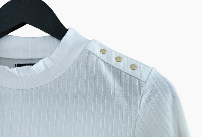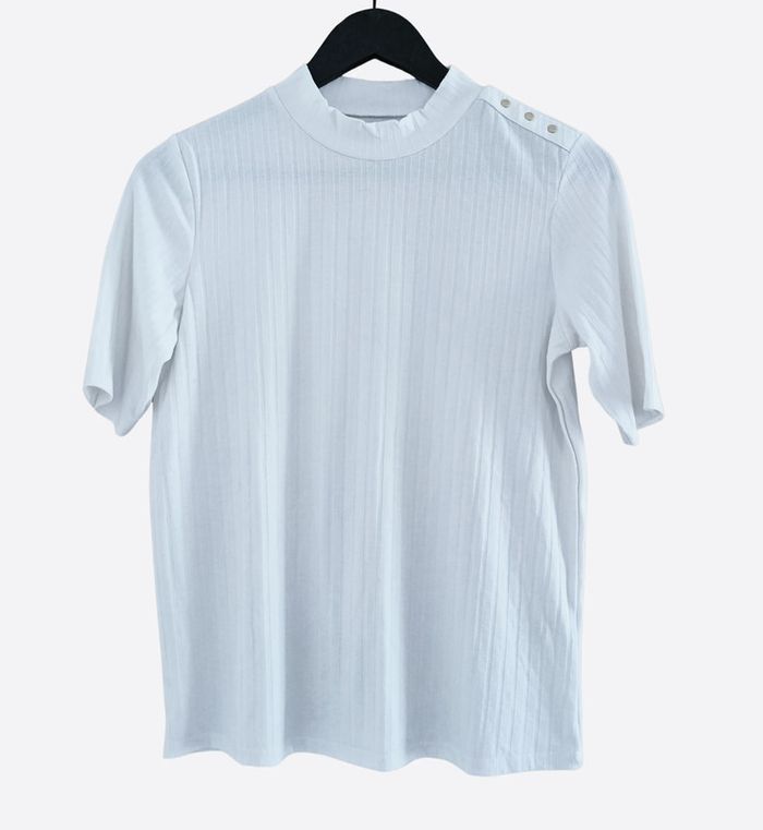 T shirt blanc a boutons dore. Kiabi. Taille M / 38 - photo numéro 6