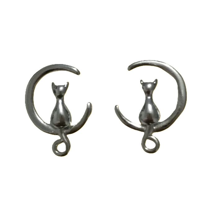 Boucles d'oreilles chat sur un croissant de lune. Argent 925