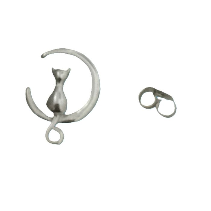 Boucles d'oreilles chat sur un croissant de lune. Argent 925 - photo numéro 3