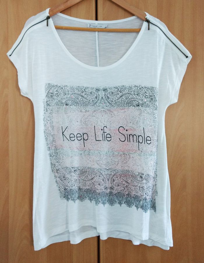 T shirt blanc casse cachemire noir fond rose. Zip. Gemo. Viscose. Taille L / 40