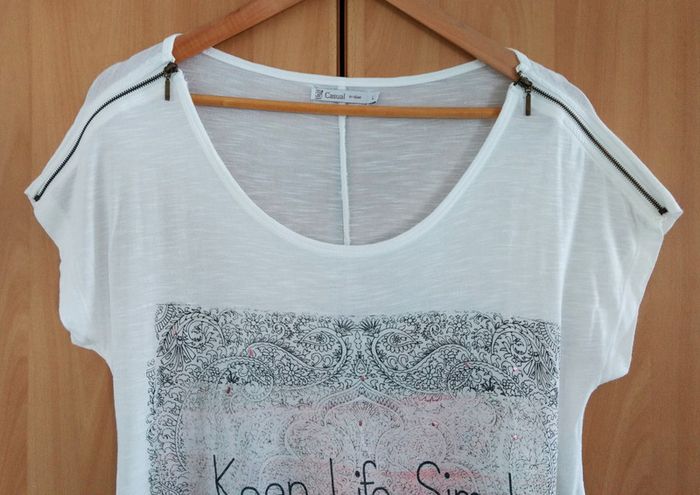 T shirt blanc casse cachemire noir fond rose. Zip. Gemo. Viscose. Taille L / 40 - photo numéro 4