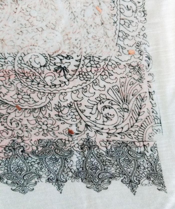 T shirt blanc casse cachemire noir fond rose. Zip. Gemo. Viscose. Taille L / 40 - photo numéro 2