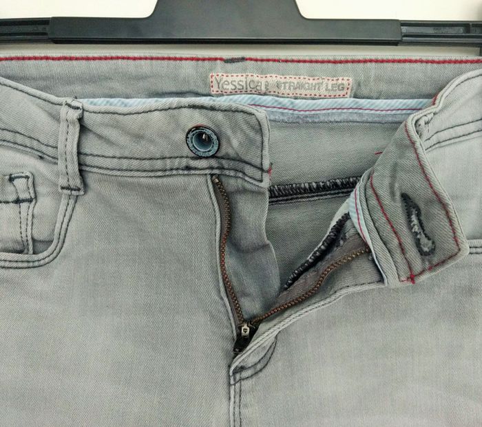 Jean gris delave. Straight leg. Yessica. Coton. Elasthanne. Taille 38 - photo numéro 3