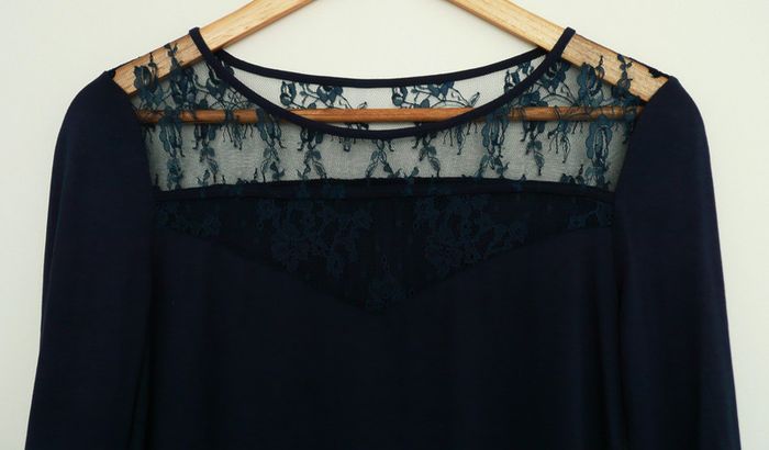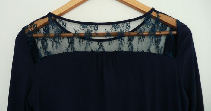 T shirt bleu marine a manches longues. Dentelle. Taille 38 - photo numéro 4