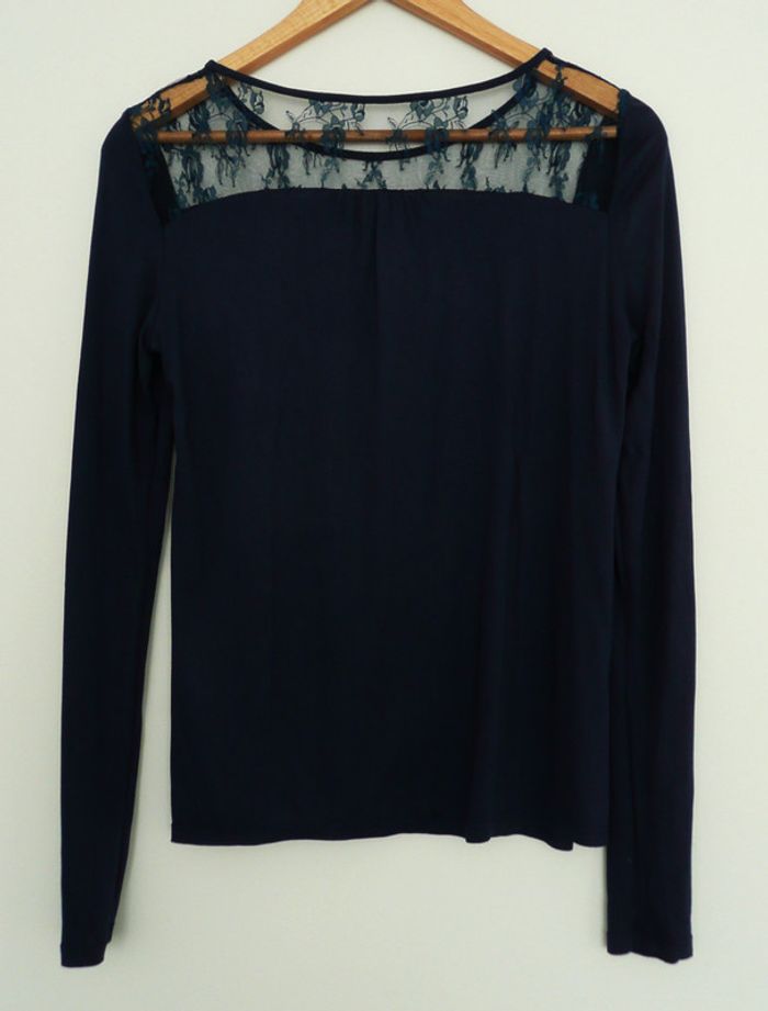 T shirt bleu marine a manches longues. Dentelle. Taille 38 - photo numéro 3