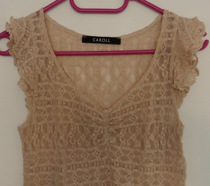 T shirt beige en dentelle. Blouse. Debardeur. Caroll. Taille 36