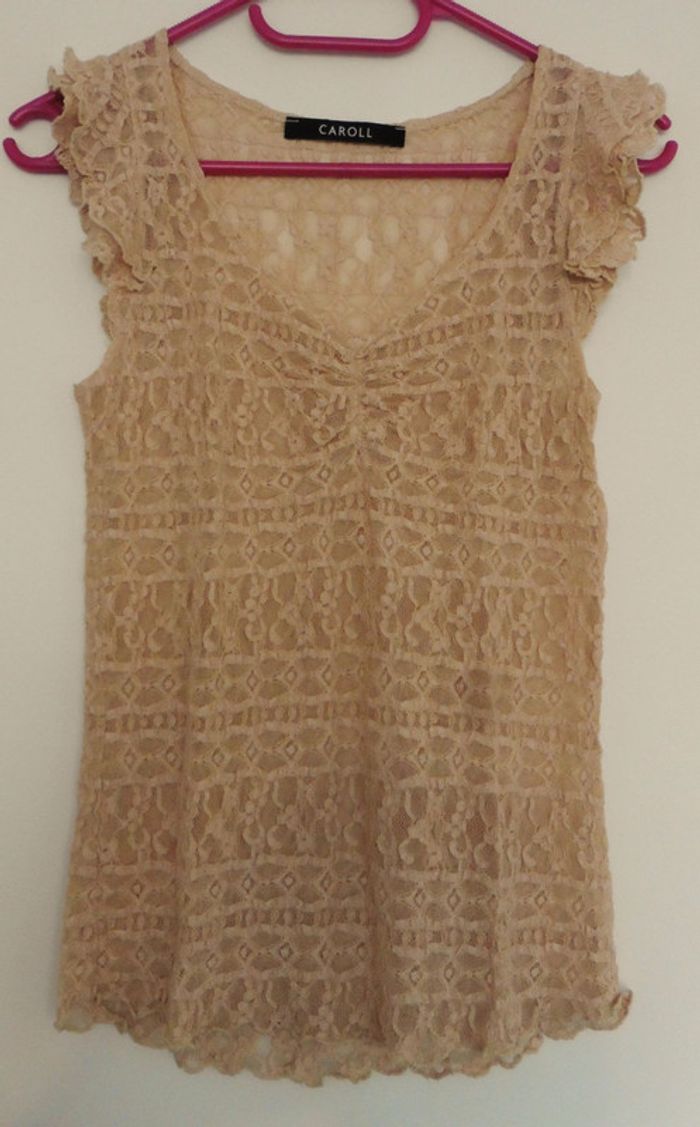 T shirt beige en dentelle. Blouse. Debardeur. Caroll. Taille 36 - photo numéro 1
