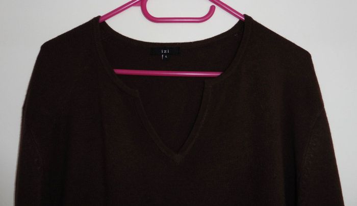 Pull marron a col v. Izi. Acrylique. Nylon. Elasthanne. Taille 40 - photo numéro 3