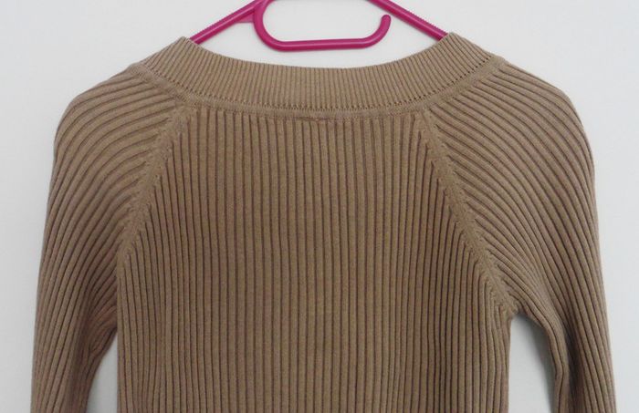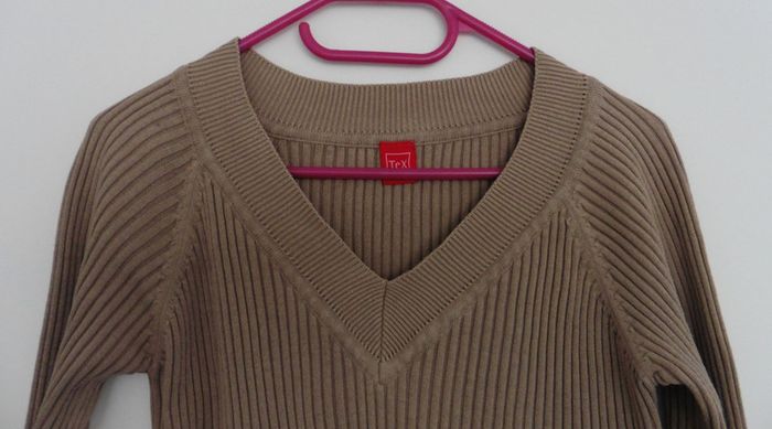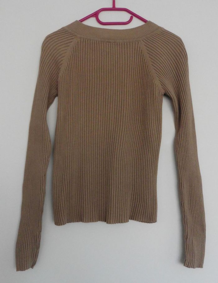 Pull beige cotele. Col en v. Tex. Coton. Taille 36 - photo numéro 3