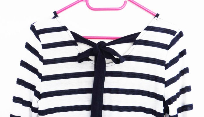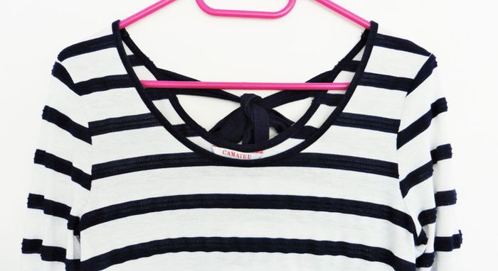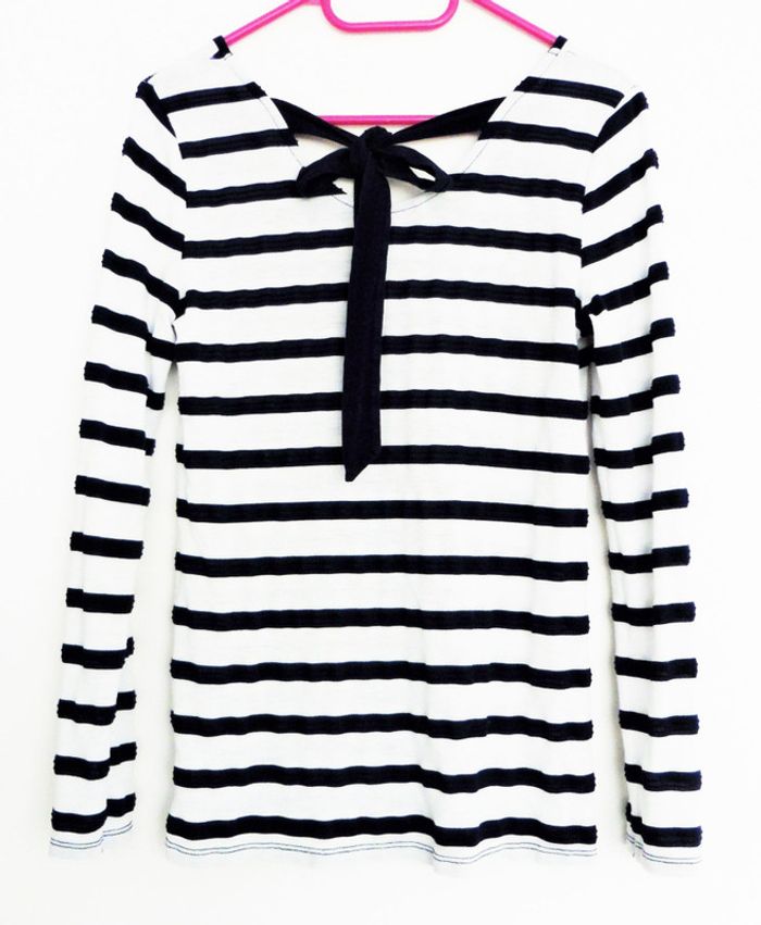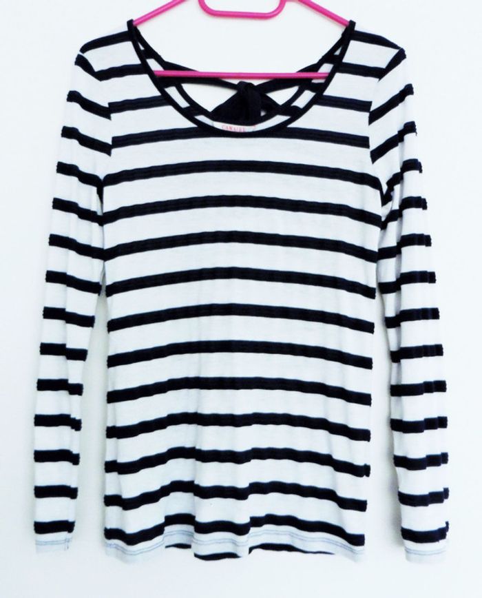 T shirt bleu marine et blanc. Manches longues. Camaieu. Taille 38 - photo numéro 4