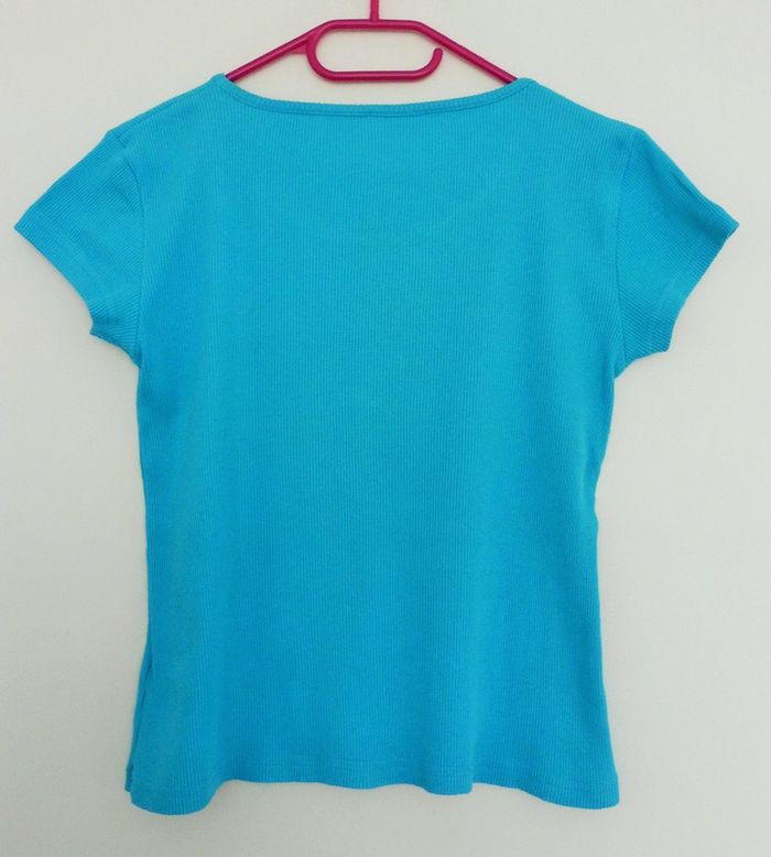 T-shirt bleu côtelé. Taille 46 - photo numéro 2
