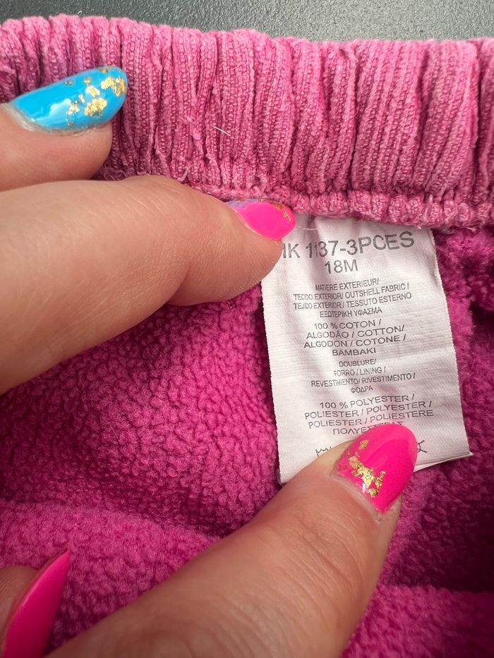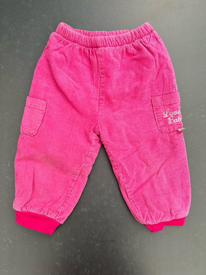 Pantalon de couleur rose, doublé en polaire. Ceinture élastique, 2 poches, bas resserré. Il a été porté mais reste en très bon état. En coton et polyester. Taille 18 mois, sans marque. Envoi rapide et soigné, réduction automatique dès 2 articles sélectionnés. Mes autres ventes ici: #18moisfilleugolola #18moisfille #fille18mois #pantalon18moisfille #pantalonhiverfille18mois