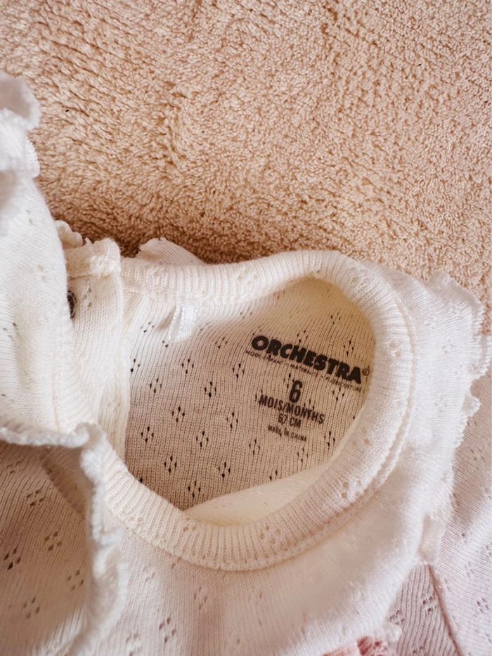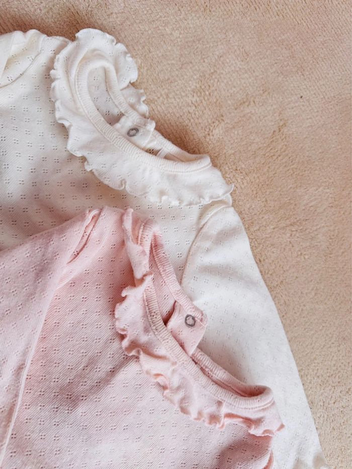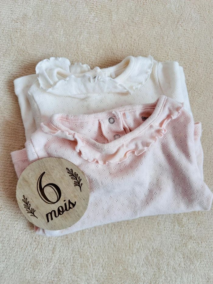 Lot 2 t-shirts manches longues Avec petit col Blanc et rose 6 mois Très bon état