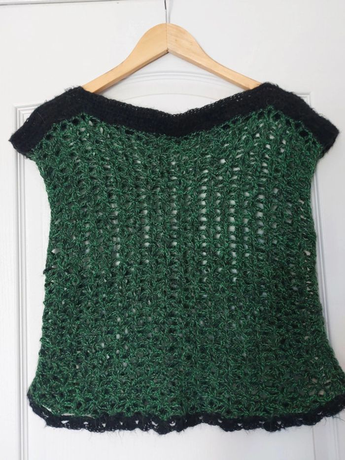 Magnifique haut sans manches, très léger et agréable à porter sur un tee-shirt manche longue, correspond à la taille M. Dimensions à plat : longueur 50 cm, largeur entre aisselles 45 cm #anchik77femme