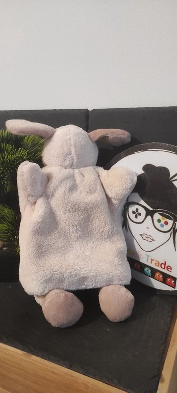 Doudou Marionnette chien lapin beige Baby Nat bn670 marron cocard - photo numéro 2