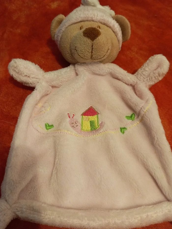 Ours rose avec bonnet et broderie escargot, Nicotoy - photo numéro 1