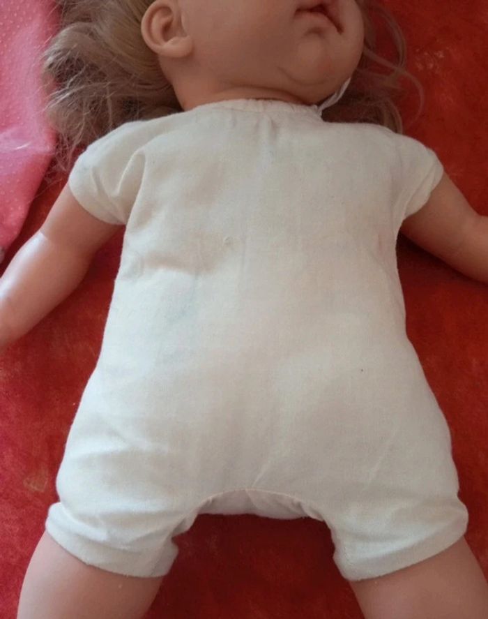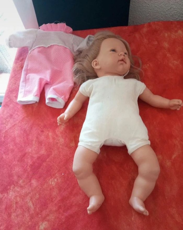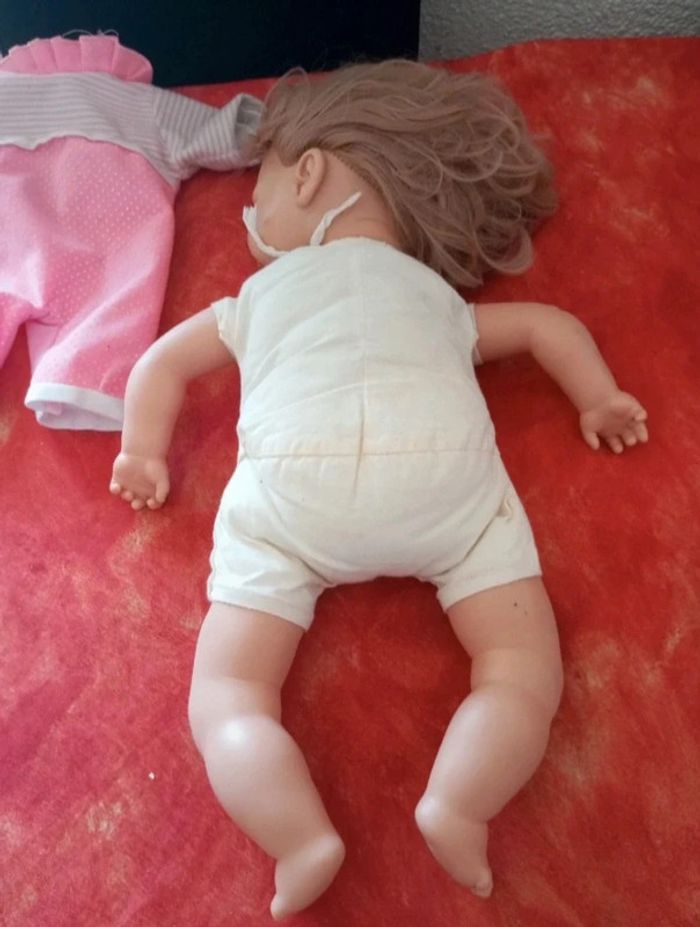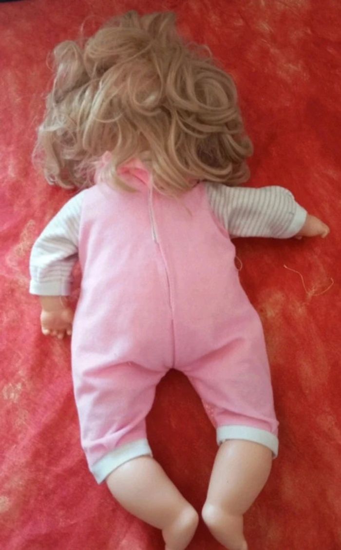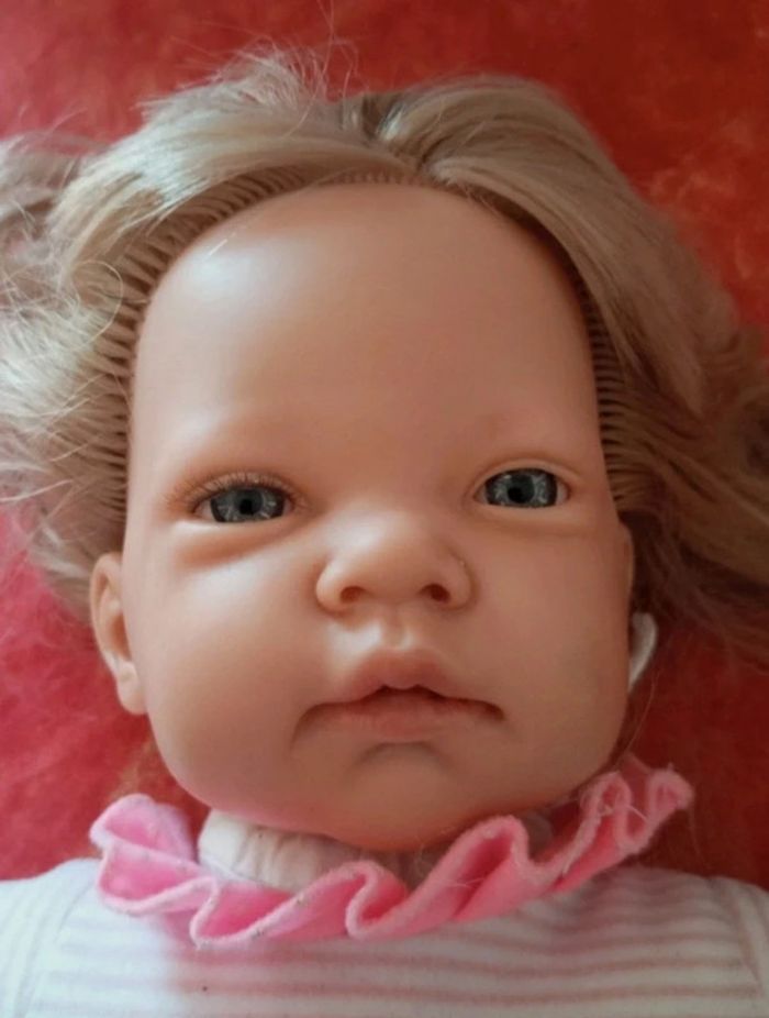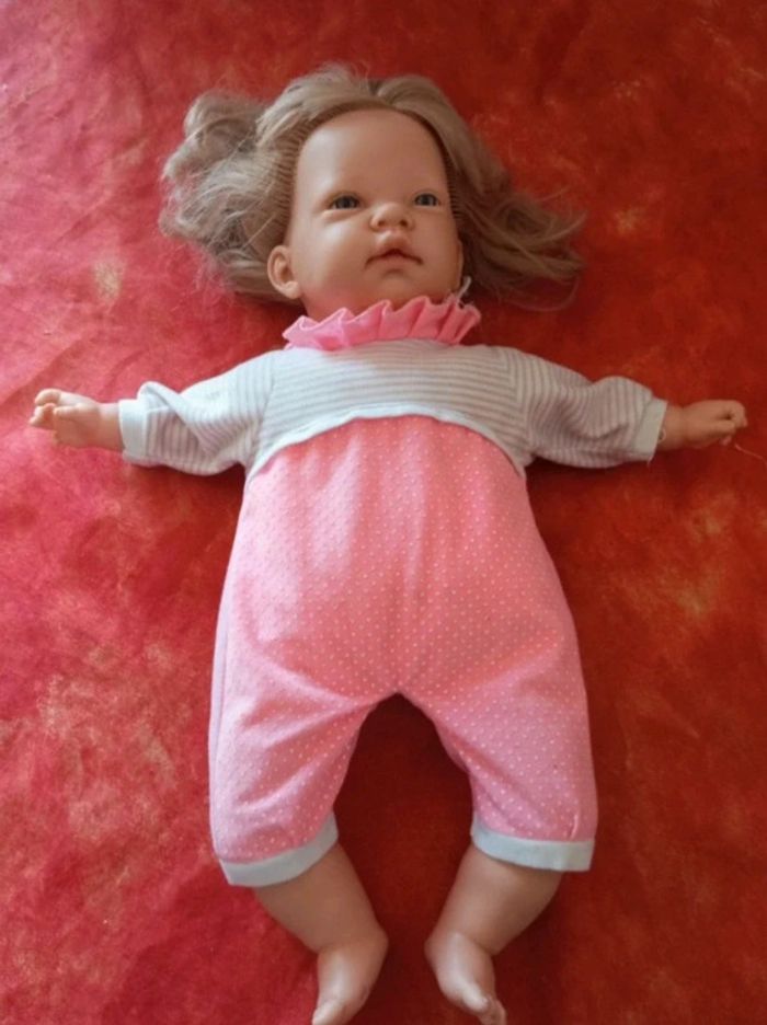 Vends cette Poupée blonde de la marque Nines A. d'onil avec un pyjama rose. Le corps est souple, jolie expression du visage. En bon état, avec des traces de stylo et de colle, vendu comme sur les nombreuses photos. Dans mon dressing, il y a d'autres peluches , des figurines, des Barbie, des Petshop, des Lego Duplo, des Playmobil, des Barbie et beaucoup de jeux et jouets vintage