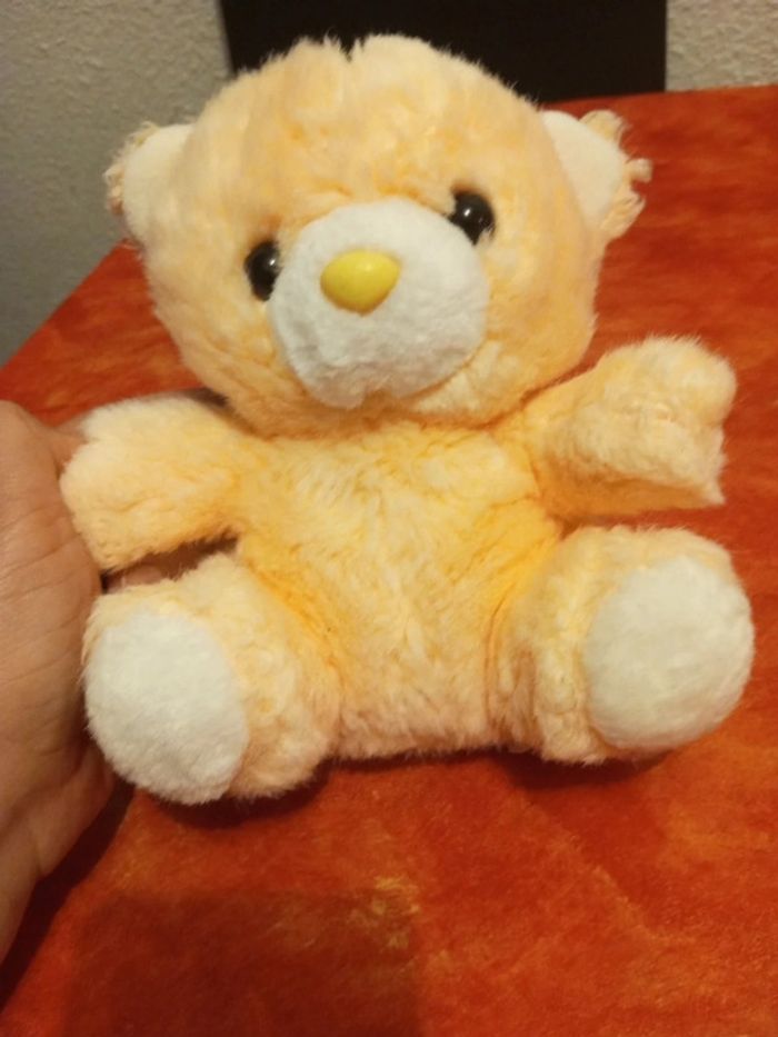 Peluche ours vintage saumon et blanc , yeux noirs, nez jaune Très bon état, vendu comme sur les différentes photos. Dans mon dressing, il y a d'autres peluches, des Petshop, des Lego Duplo, des Playmobil, des Barbie et beaucoup de jeux et jouets vintage #Nourriture06_peluche_vintage